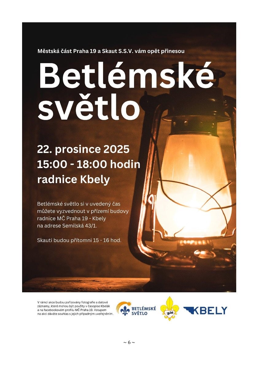 V Městské části Praha 19 Kbely působí náš spolek již 5 let. Každý rok pořádáme pro veřejnost mnoho akcí např.: Skautský den (úklid Centrálního parku), Zborovský závod (připomínku na naše legionáře), Kuličkiádu, úklid studánky ve Vinořské oboře, Oslavy vzniku republiky, připomínku Osvobození republiky atd.