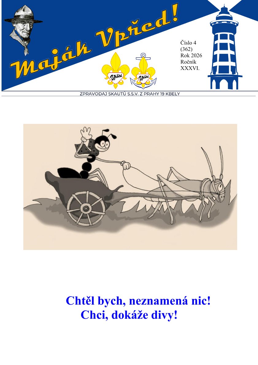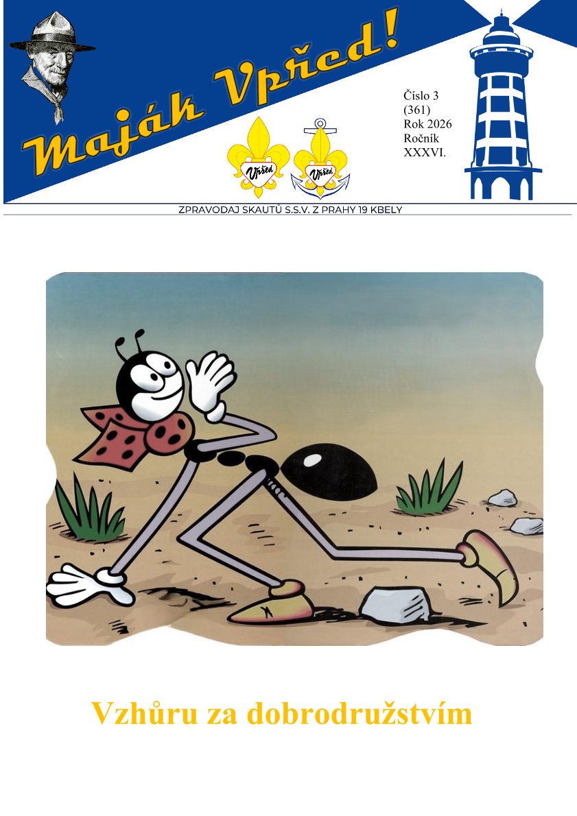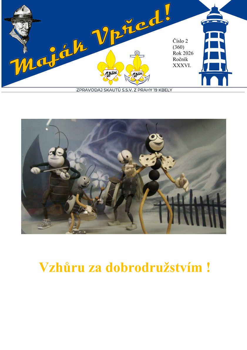 Z obsahu: plán činnosti na únor pro Vlčata a Bobříky, skautská burza, informace k uniformě, posezení s režisérem T. Vorlem
